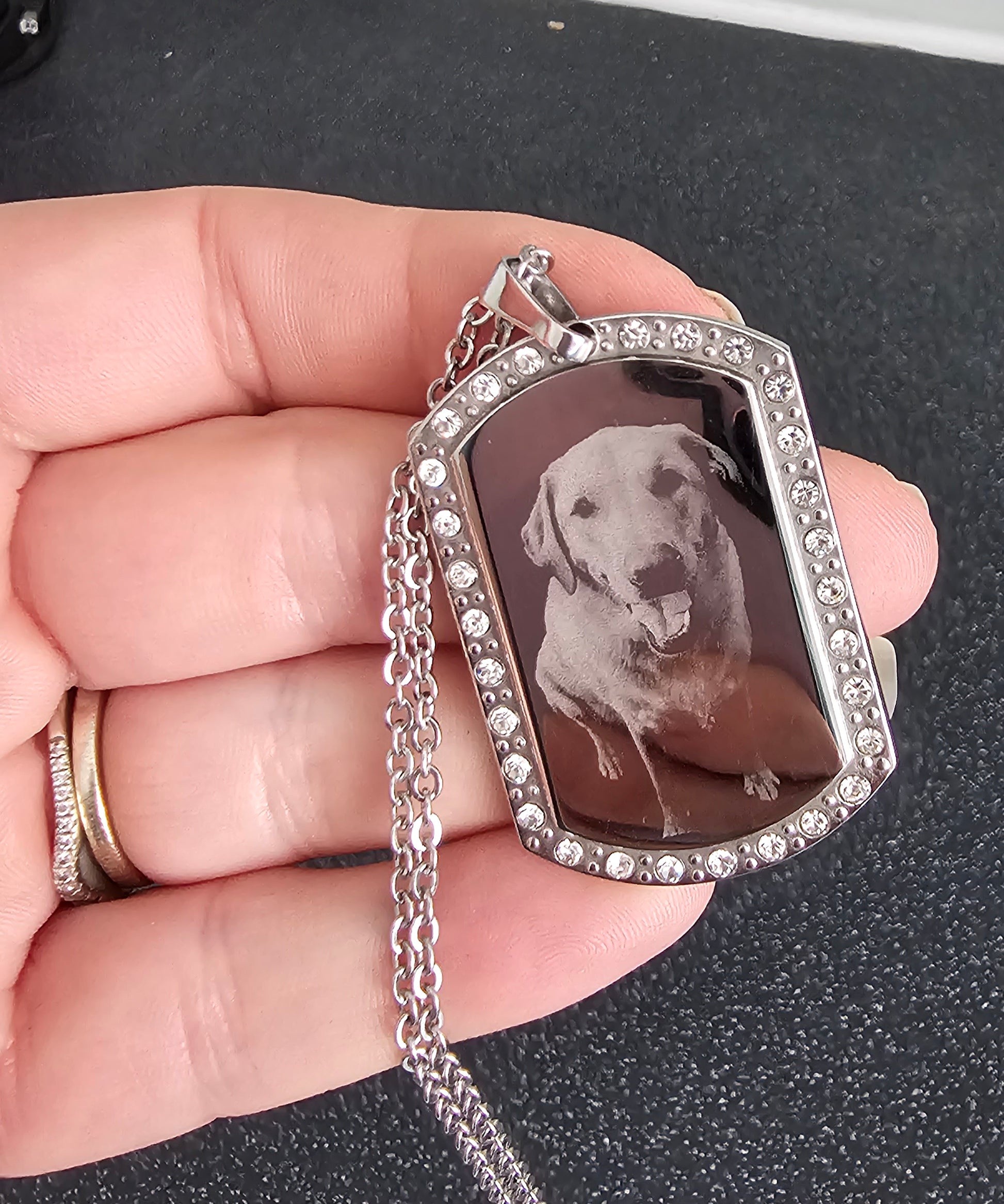 Transform your cherished photographs, handwriting, or drawings into a stunning wearable keepsake with our premium Gemstone ID Tag Pendant. This exquisite piece combines timeless elegance with deeply personal meaning, creating a memorial treasure you'll hold close to your heart forever.